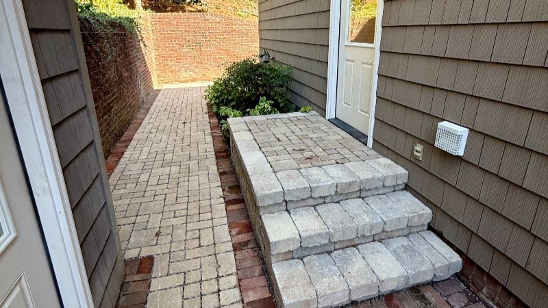 We began with a full site evaluation to understand how water was moving across the property. The tight access and limited working space required careful planning, especially with the amount of material needed for proper base depth.