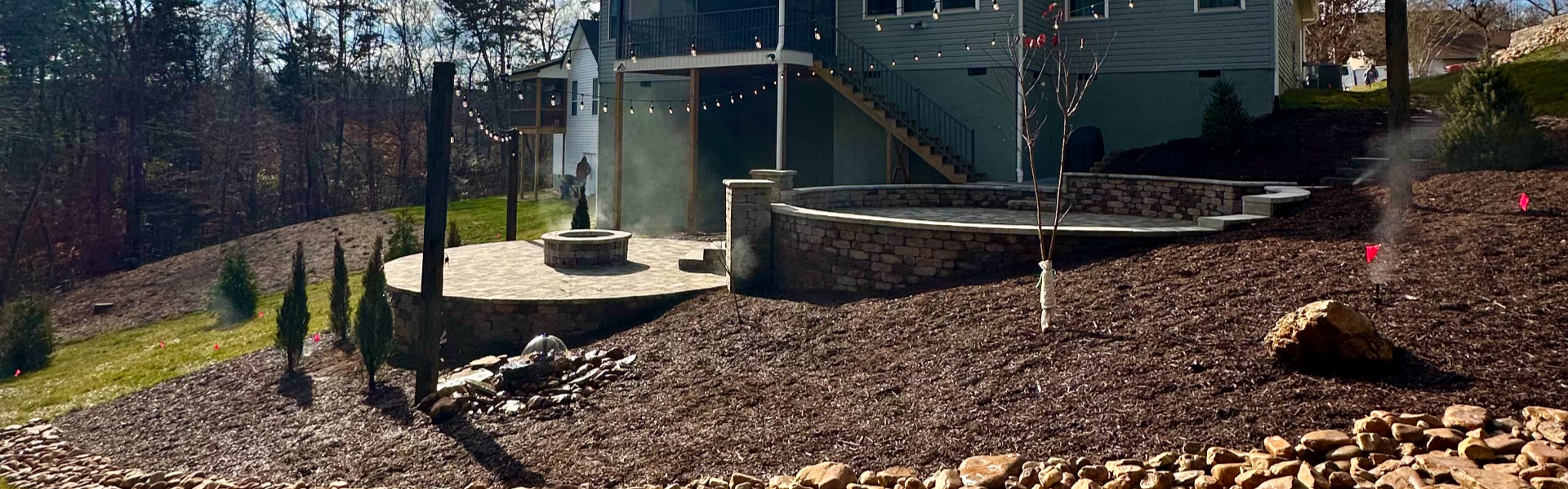 Services Provided: Patio construction, retaining wall installation, landscape design, drainage correction, irrigation, lighting, sod installation