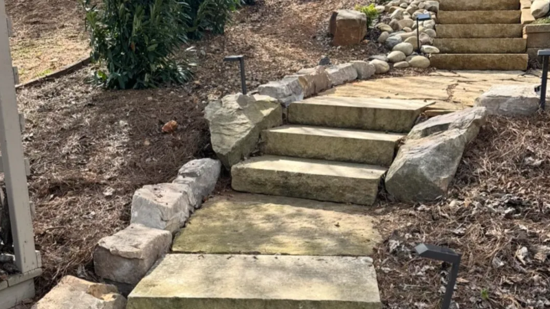 - Steps, ledges, and elevation changes are easy to miss at night, especially when the hardscape color blends together.